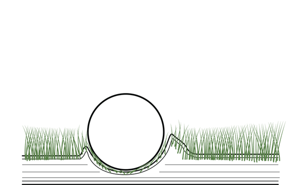 If the golf ball hits the green from a height, a crater-like hole is created. This needs to be repaired/removed promptly so that the green remains level and playable.
