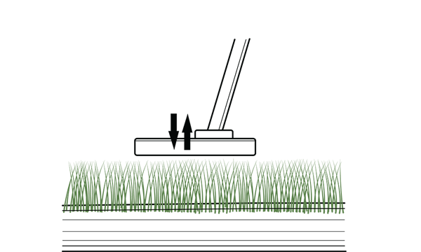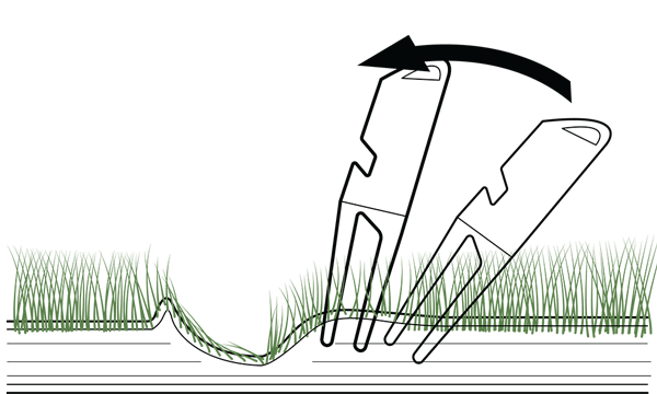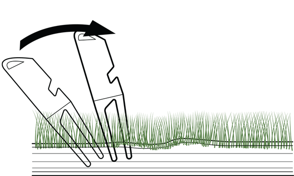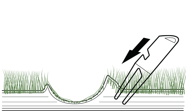 Now carefully push the divot tool forwards. Slight, lateral movements can have a positive effect. This brings the raised soil layers back into their old position.